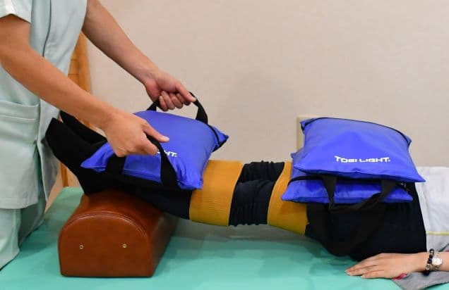 最初2・3回はベルトだけの矯正です。お身体が慣れてきたら、脚の状態により重りを乗せていきます。(重さは少しづつ乗せて調整しますのでご安心ください。)