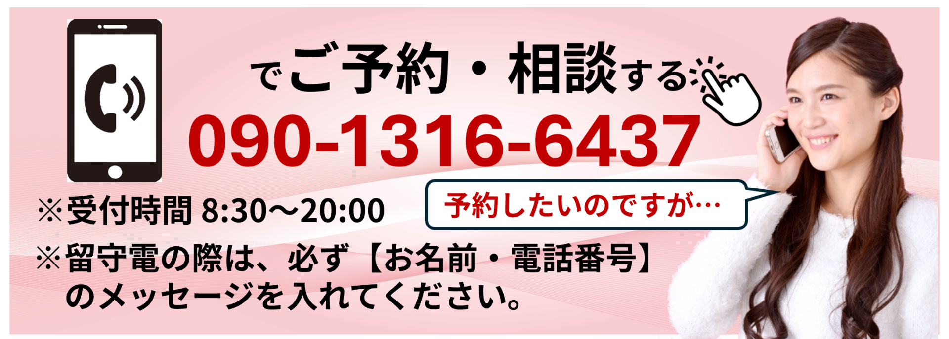 ※留守番電話になった際は、必ずメッセージ(お名前・お電話番号)を残してください。