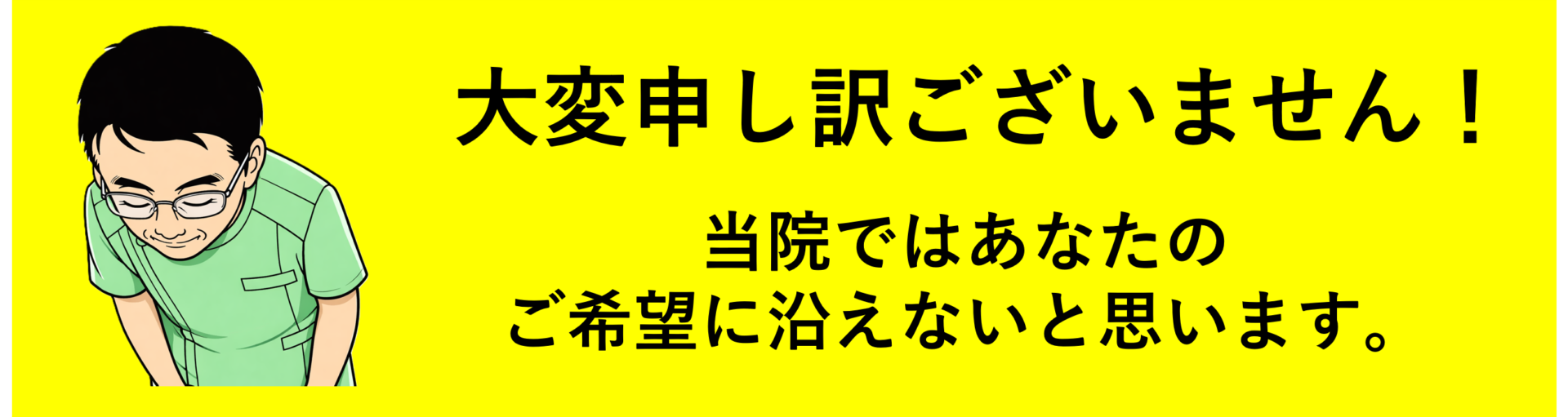 上記に1つでも該当する方は、当院ではご期待に添えない可能性がございます。他院をお探しください。