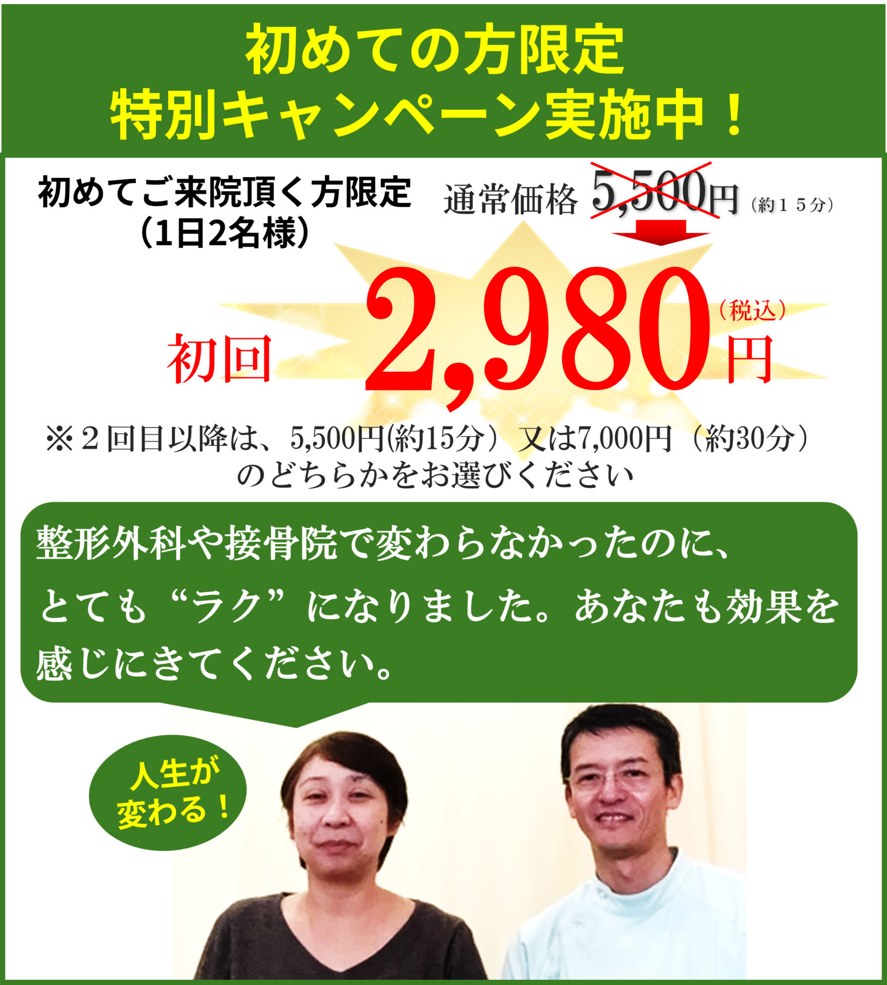 ※2回目以降は、スタンダードコース:5,500円(約15分)、又はプレミアムコース:7,000円(約30分)のどちらかをお選びください。